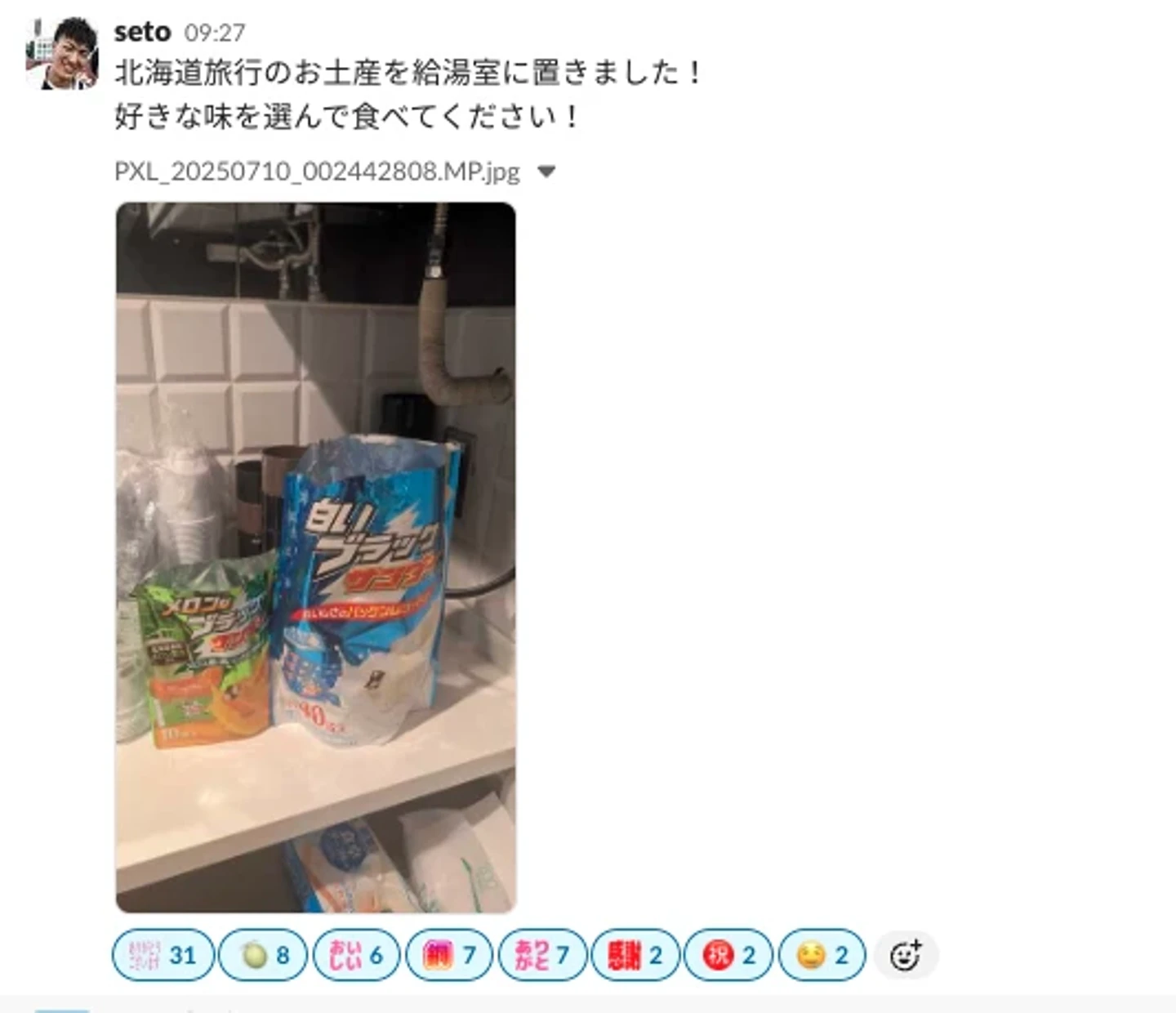 旅行が好きなスタッフも多いため、お土産の購入報告なんかも多いです!(美味しくいただきました!)
