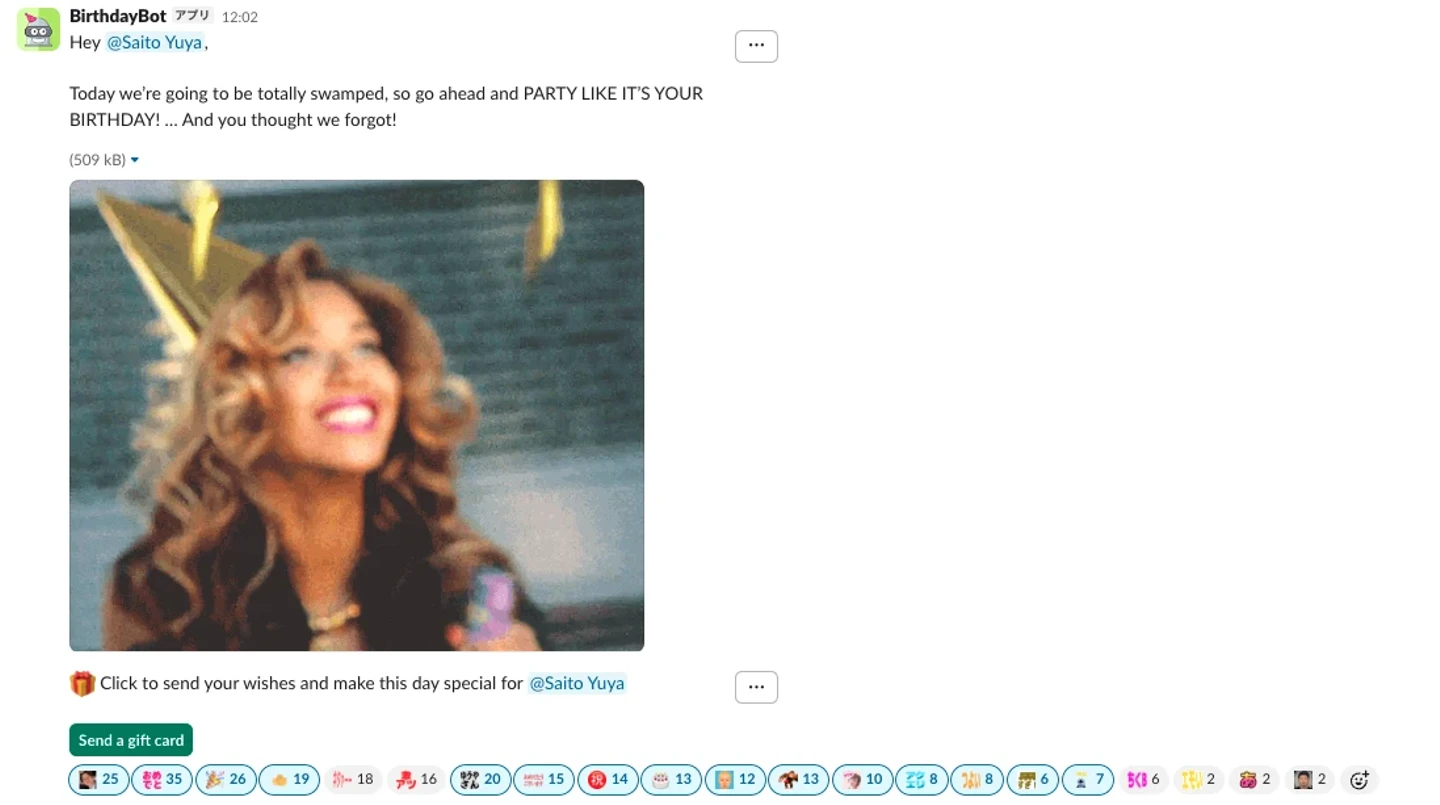 スタッフの誕生日を祝う仕組みもあり、誕生日当日にはたくさんのお祝いスタンプが送られます!🎂🎉