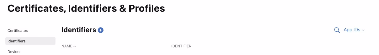 Identifiersの右側にあるプラスボタンをクリック。