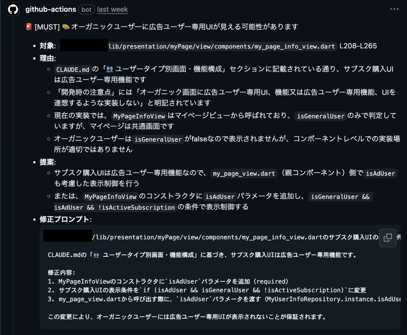 命名や単純な改善点、明らかなミスの洗い出しを AI に任せることで、